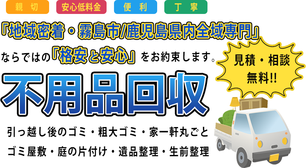 霧島市を中心に鹿児島県内全域に出張☆あらゆる不用品を一気に片付けます。